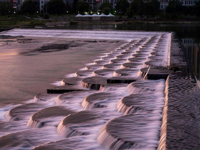 綠水工程1#壩是松溪水美城市PPP項目完工的首個節(jié)點工程,屬壅水壩,壩后形成綠水漪鏈的湖面,壩前則是獨具特色的魚鱗疊水景觀,成為湛盧明月下水美松溪的一道印記。